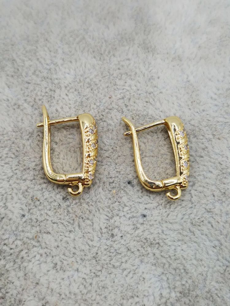 Tortiță cercei cu model, cubic zirconia, alamă placată cu aur 18k 19x8mm O pereche.