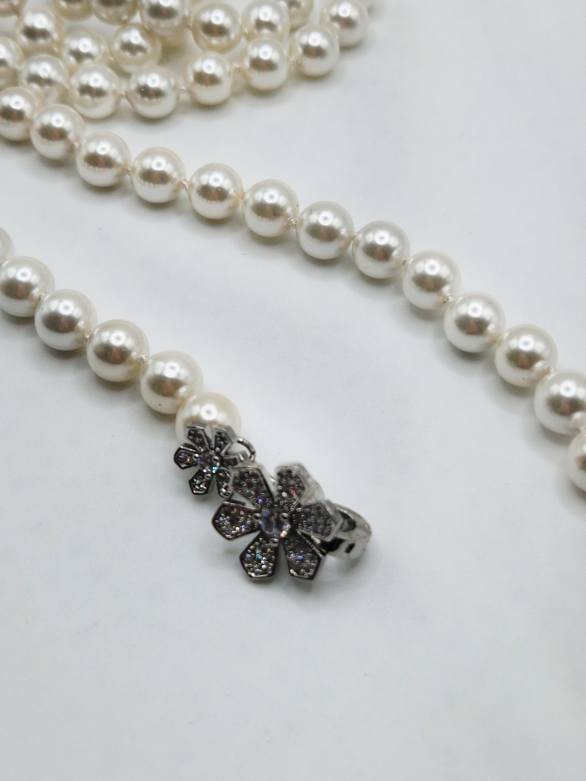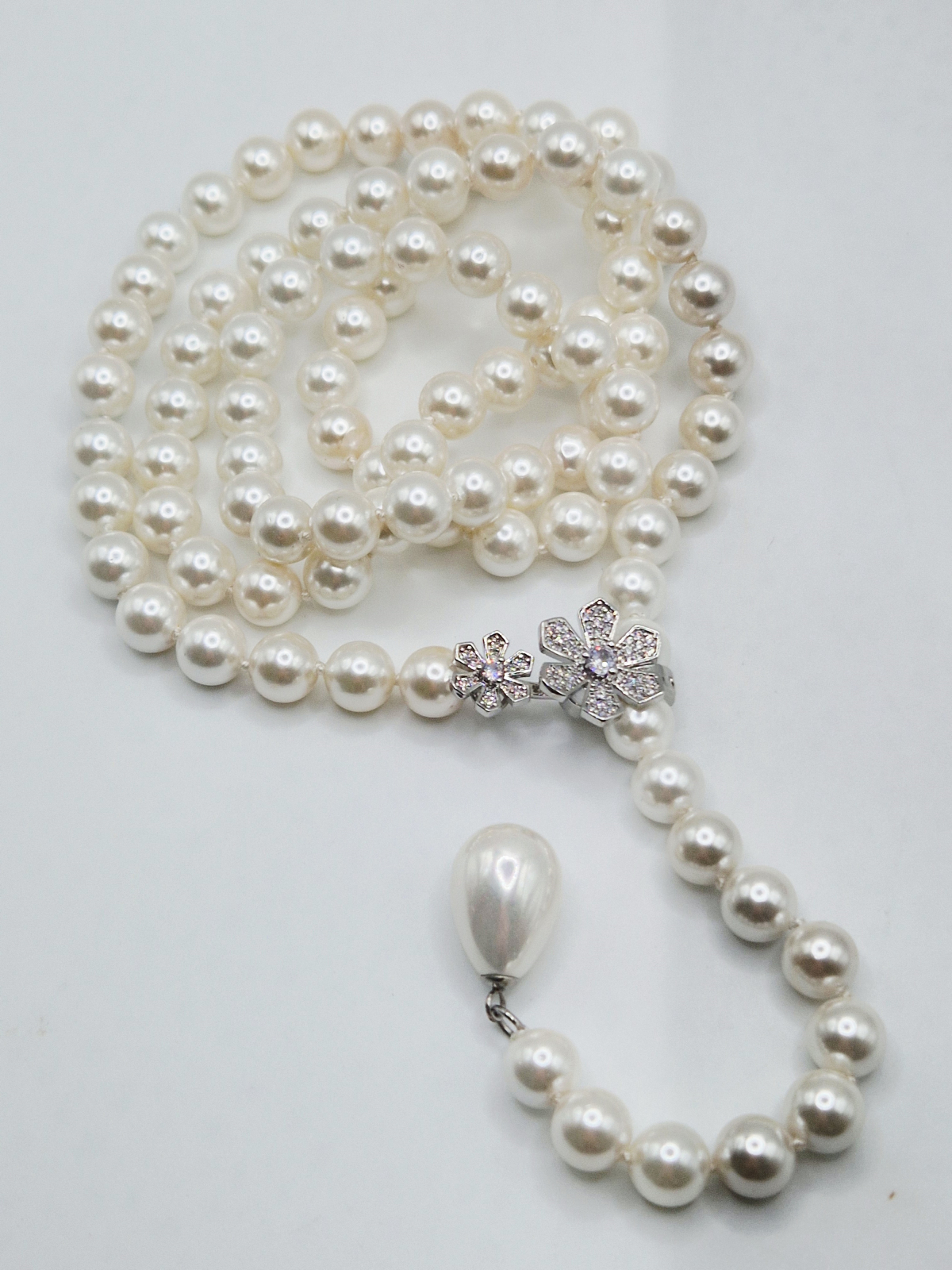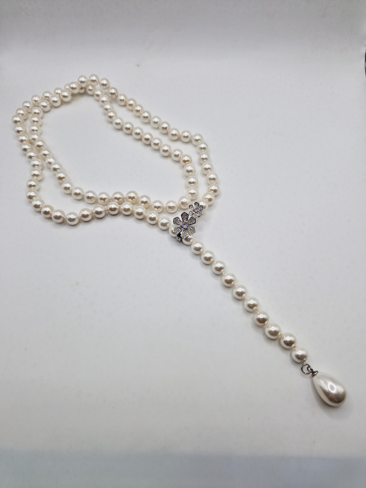 Colier delicat și lung din Perle tip Mallorca albe.