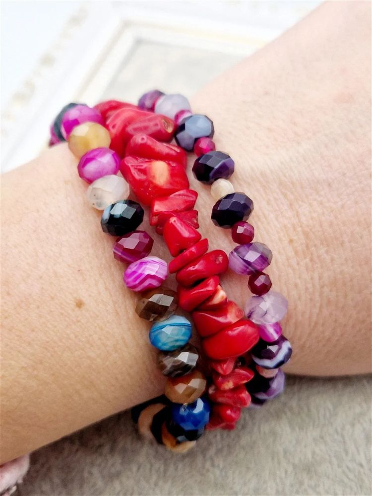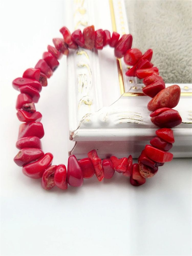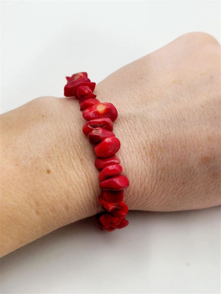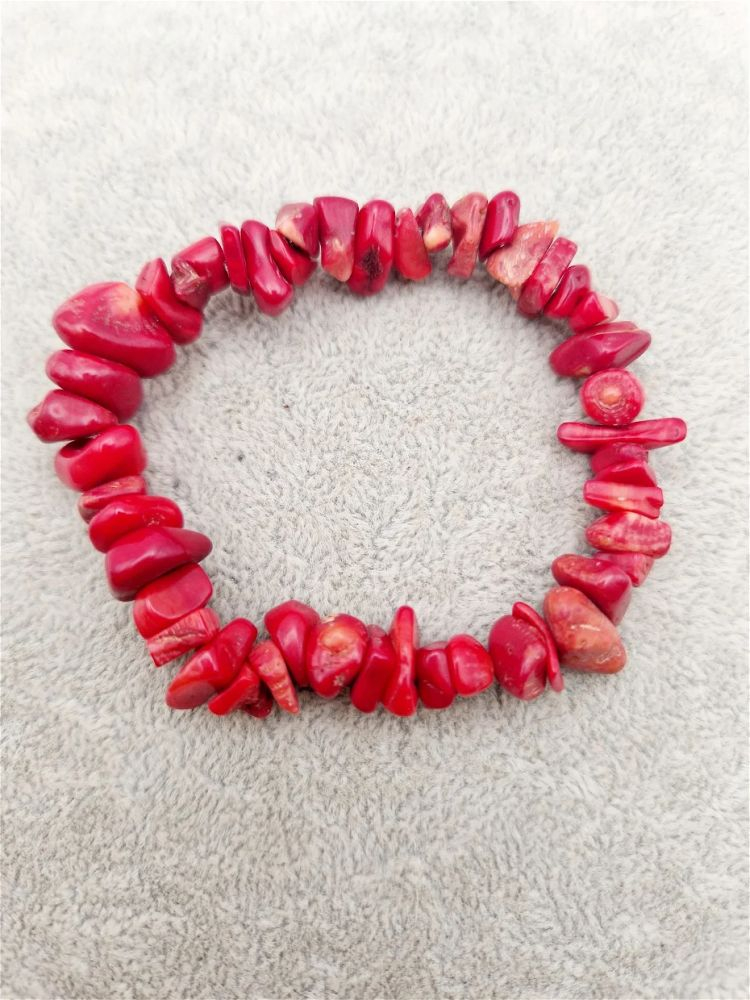 Brățară realizată pe elastic din chipsuri de Coral, de mari dimensiuni. Brățara îmbrăcă frumos încheietura mâinii.