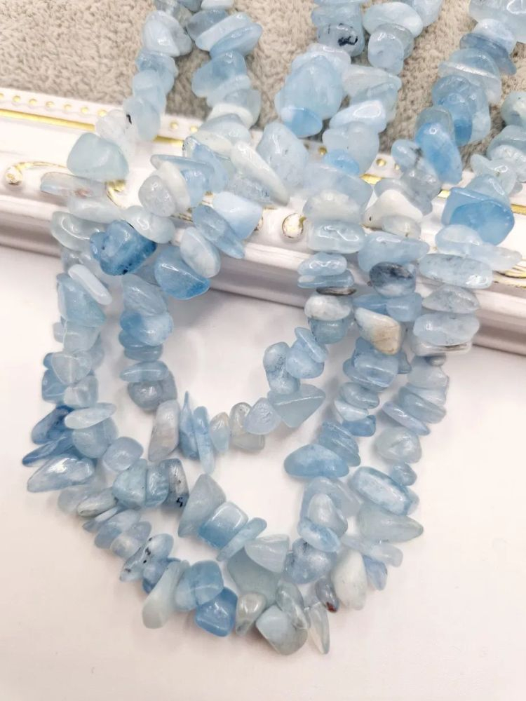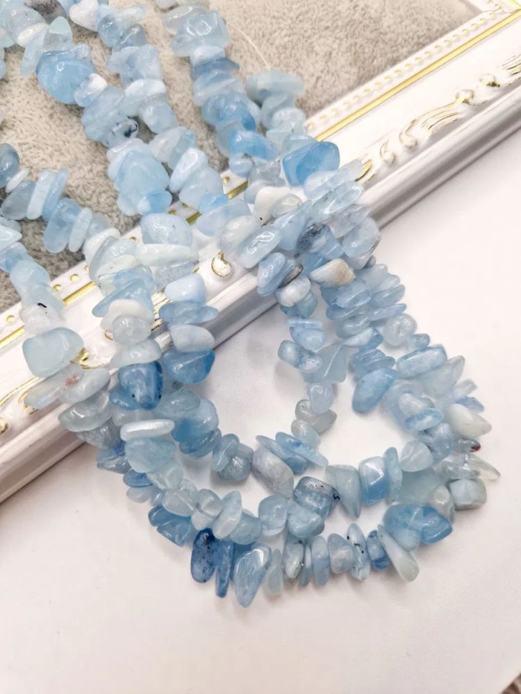 Chips mediu din acvamarin, șirag de 26cm - 1 buc