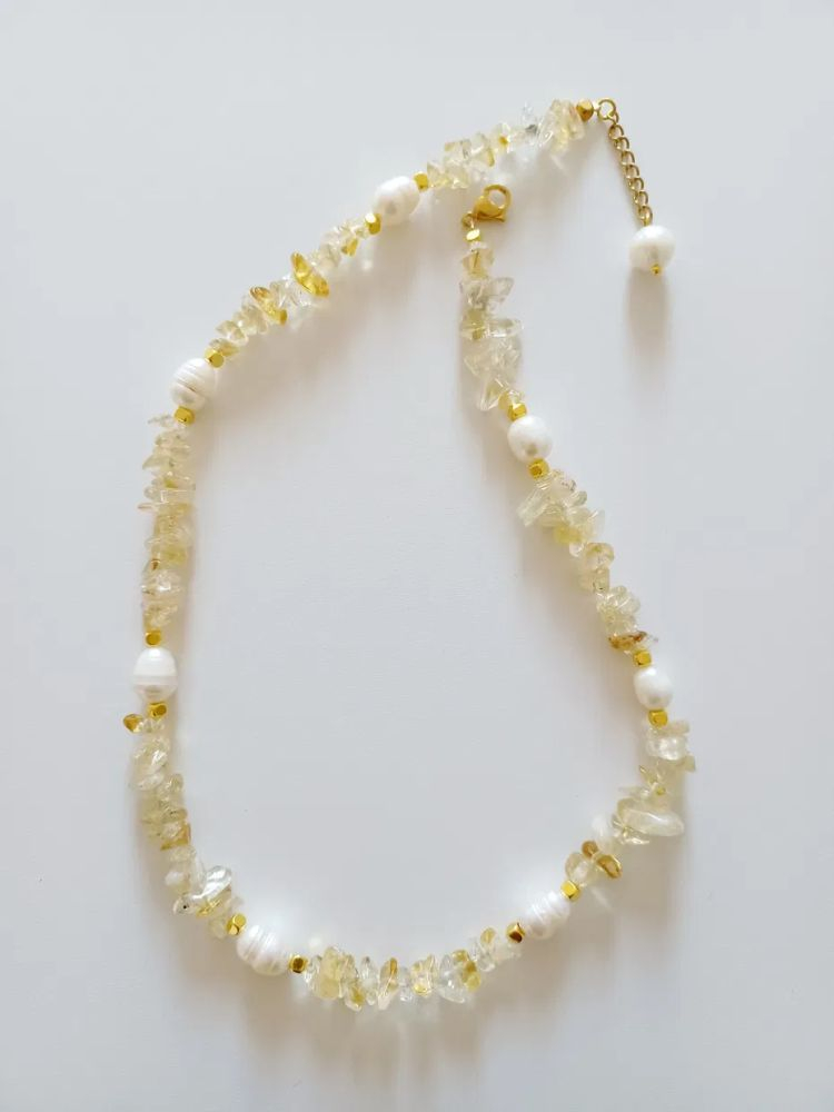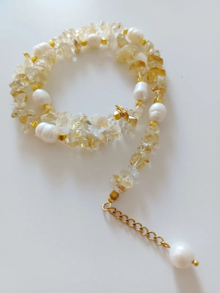 Colier realizat din pietricele neuniforme de Citrin și Perle naturale baroc.