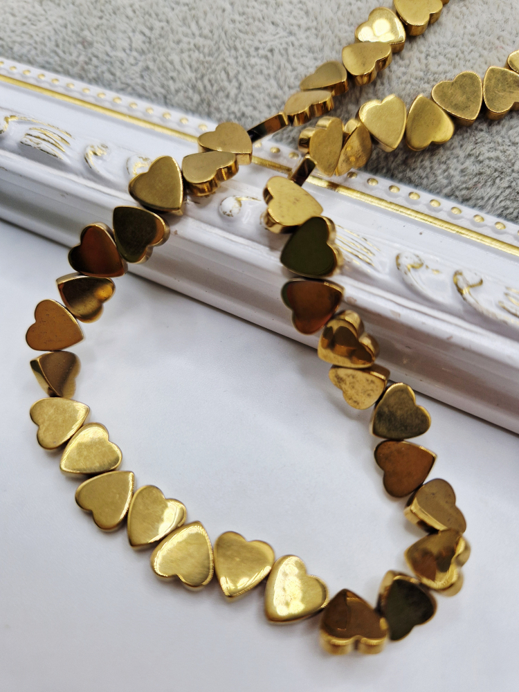 Inima hematit aurie orizontala 8mm - 1 buc inima
