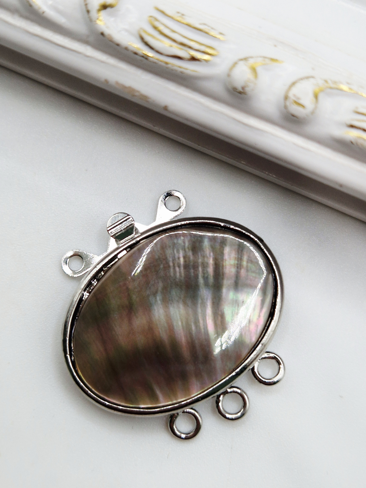 Închizătoare multișir sidef/scoică 27mm - 1 buc 3 orificii de 2mm Distanța dintre orificii 1.5mm