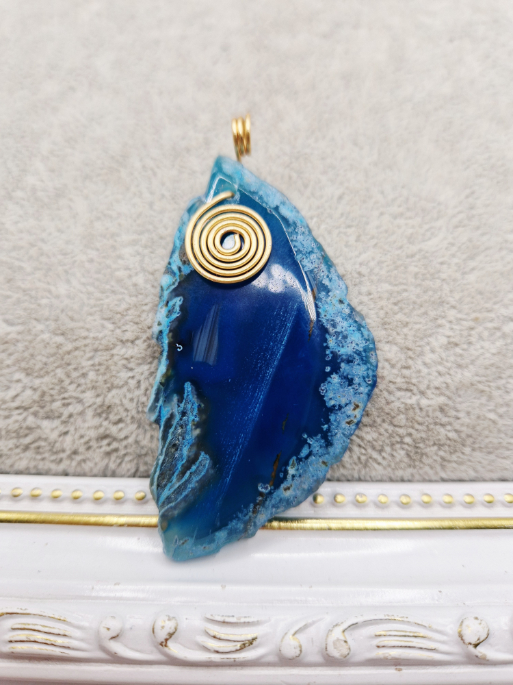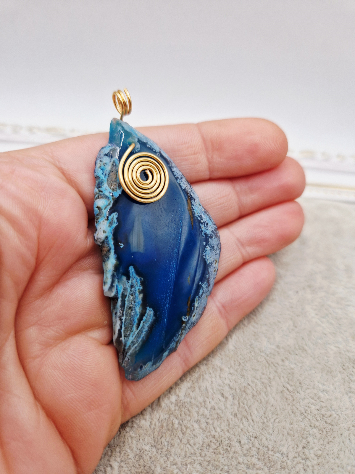 Pandantiv din Agata albastra cu anou si orificiu de 5mm.