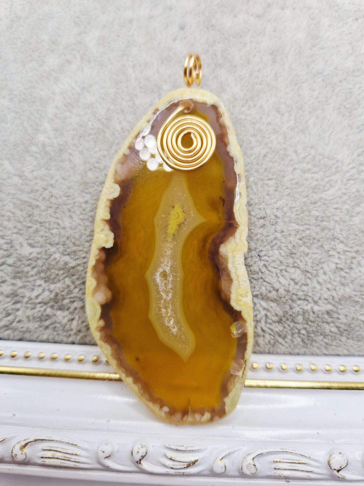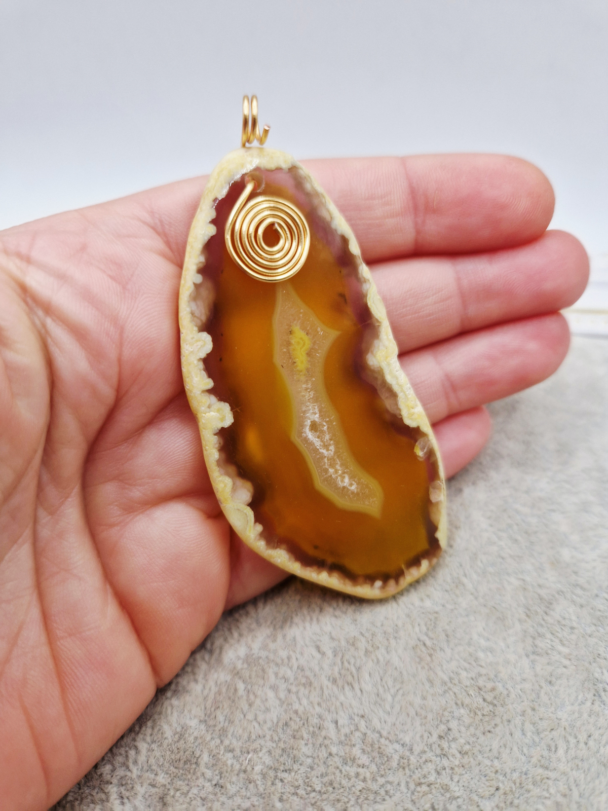 Pandantiv din Agata galbena cu anou si orificiu de 5mm.