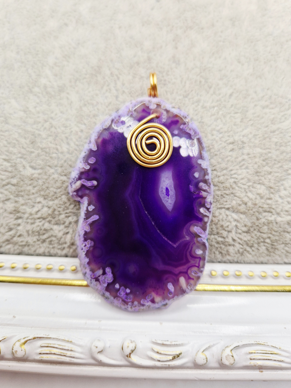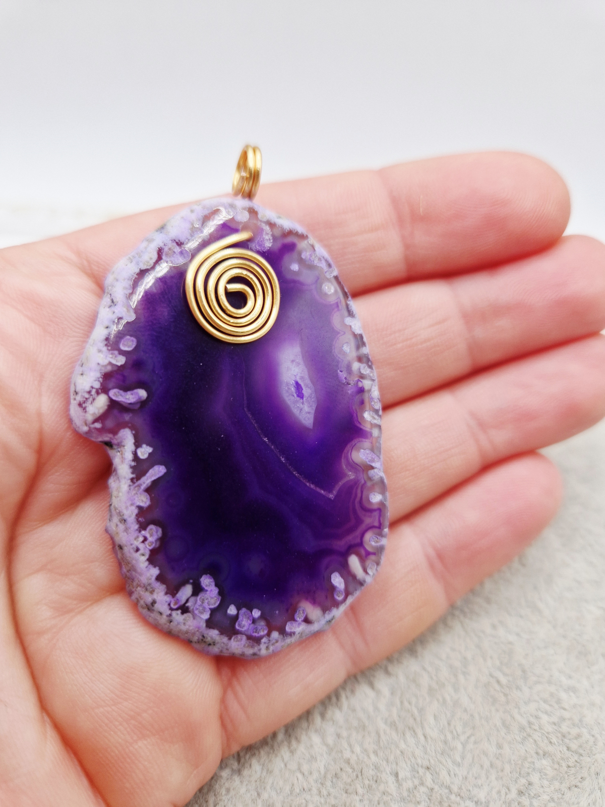 Pandantiv din Agata mov cu anou si orificiu de 5mm.