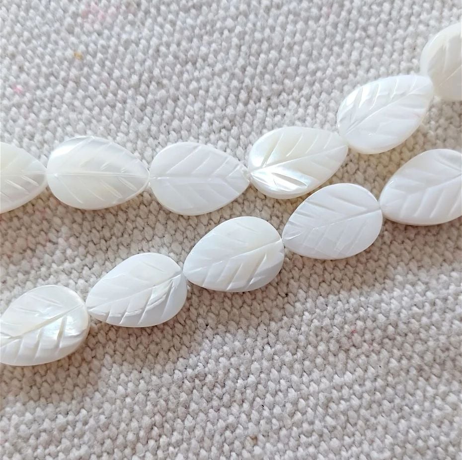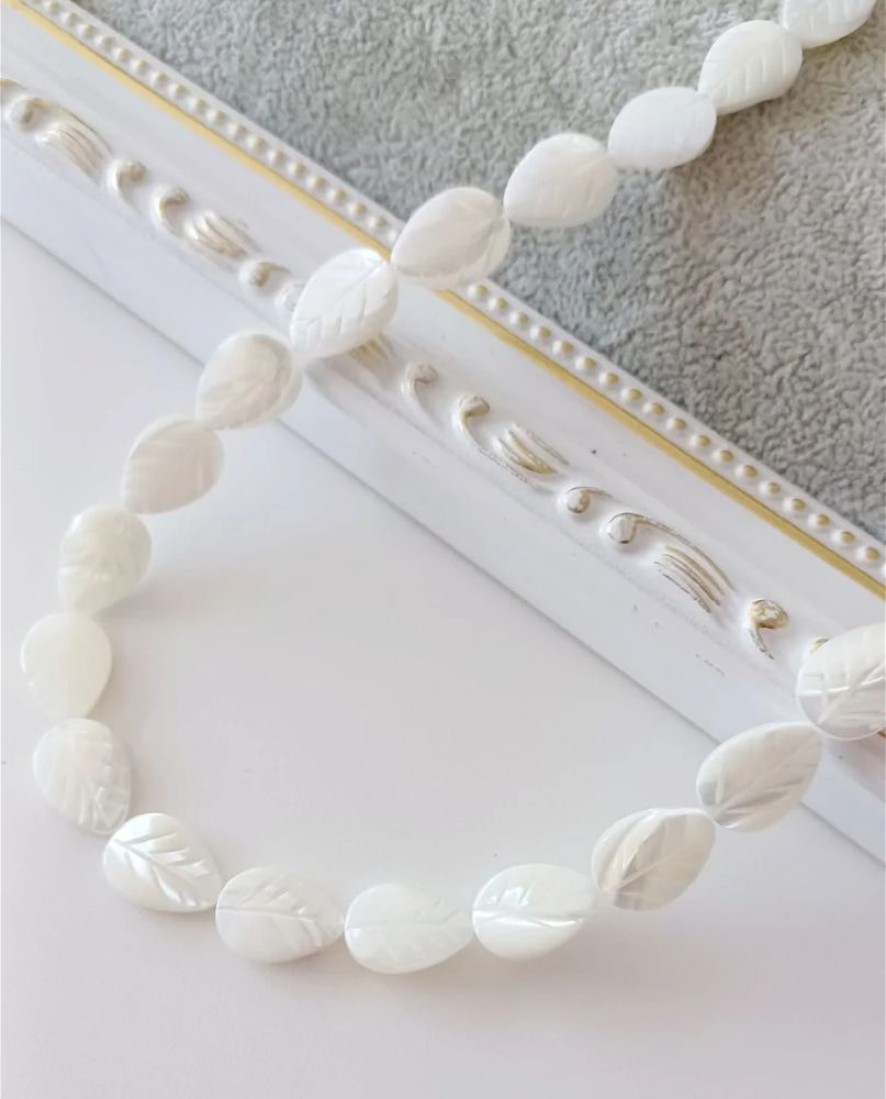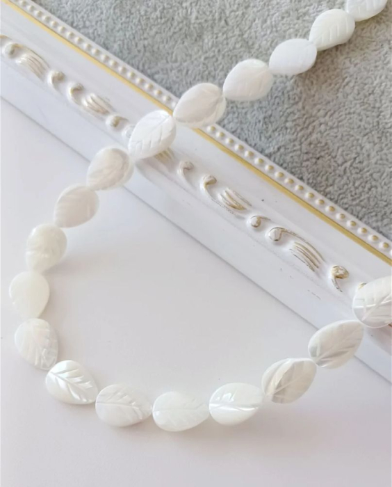 Sidef alb sub formă de frunză, 14x10mm - 1 buc.